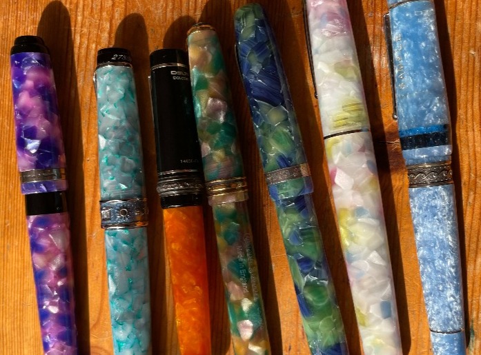 私はというと、本体がマーブル模様であればもれなく萌えます。そんな訳で私のコレクションの多くがマーブル模様。ここには写真が2枚しか載せられないので全部はお見せできませんが、ウチの子たちのほんの数人です。