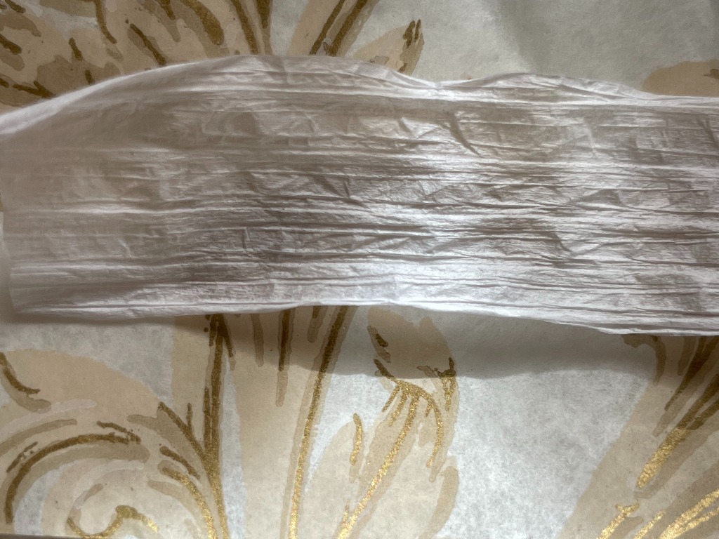 なんと現れたのは薄い薄い和紙のお姿!下がうっすらですが透けて見えませんか。こんなに薄い和紙様が水引の中におこもりだったとは!