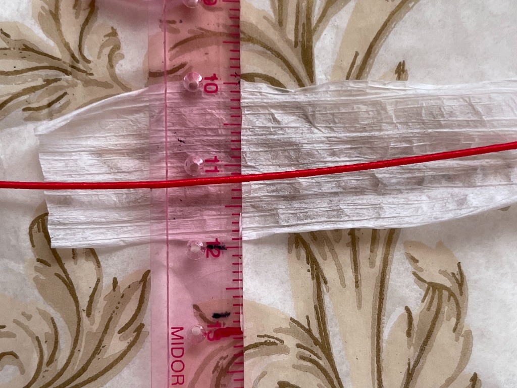 もっと厳密にいえば、コヨリを作ってのりで固めて糸を巻き付けるので、のりと糸の分を考えると、できたコヨリは9㎜以下になると思います。1㎜になると太い!と感じてしまうので、1㎜以下の世界の話。大雑把な私には驚愕の世界です。
